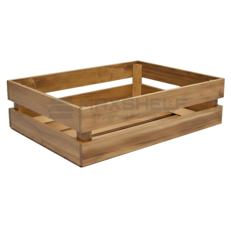 This compact wooden display crate is expertly designed for high-impact retail merchandising. Featuring a natural timber finish and a classic open-slat design, it creates a warm, authentic aesthetic perfect for showcasing fresh produce and speciality artisan goods. Whether used as a standalone countertop unit or integrated into shelving, it provides an eco-friendly and visually appealing solution for modern store fit-outs.