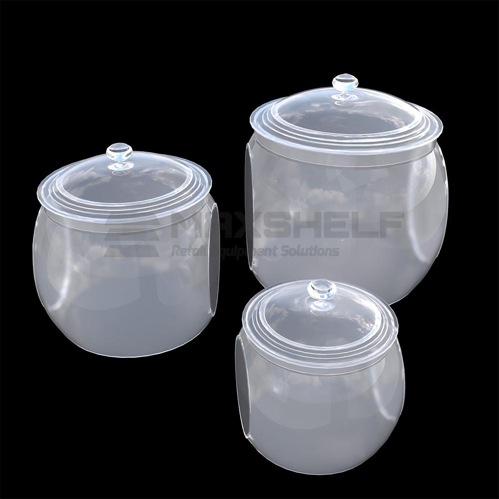 Elegant and durable, this three-piece acrylic bowl set comes with matching lids to keep contents fresh and protected. Perfect for displaying snacks, sweets, or dry goods while adding a modern touch to your counter or display. Lightweight, shatter-resistant, and easy to clean.