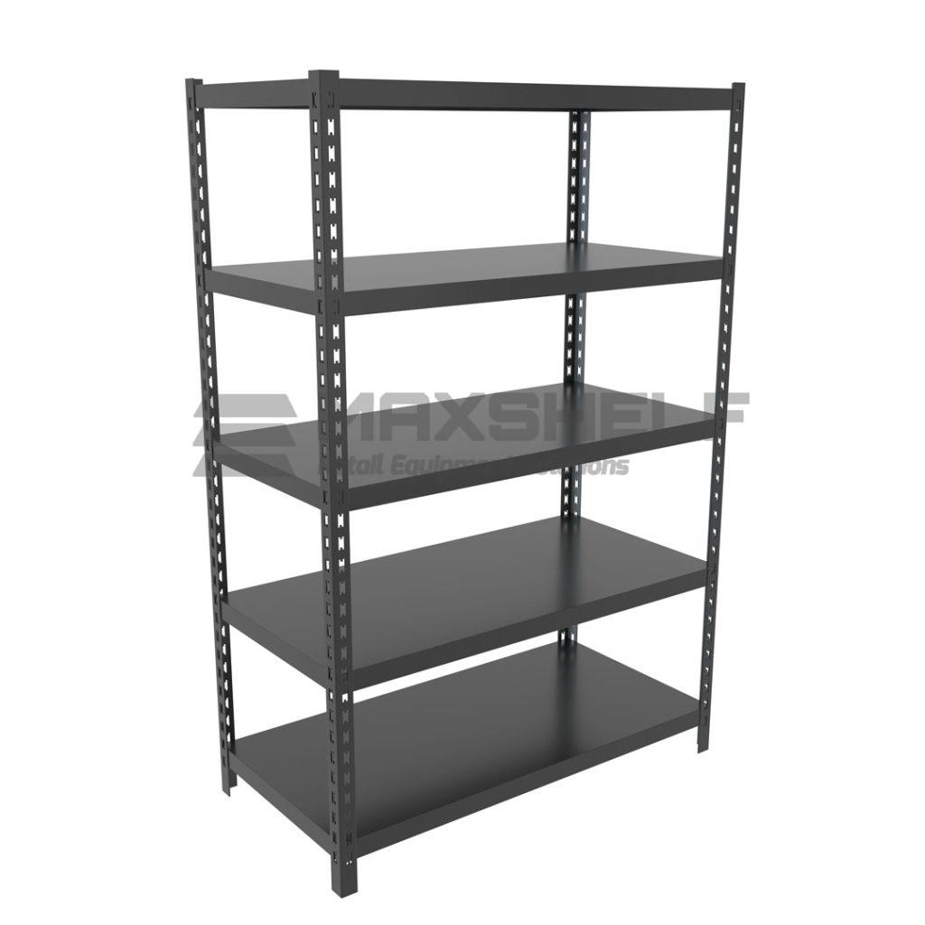 Our 5 shelving Boltless shelving unit in black, 1830mm tall with 5 tiers. Ideal for uses in offices, homes and more.