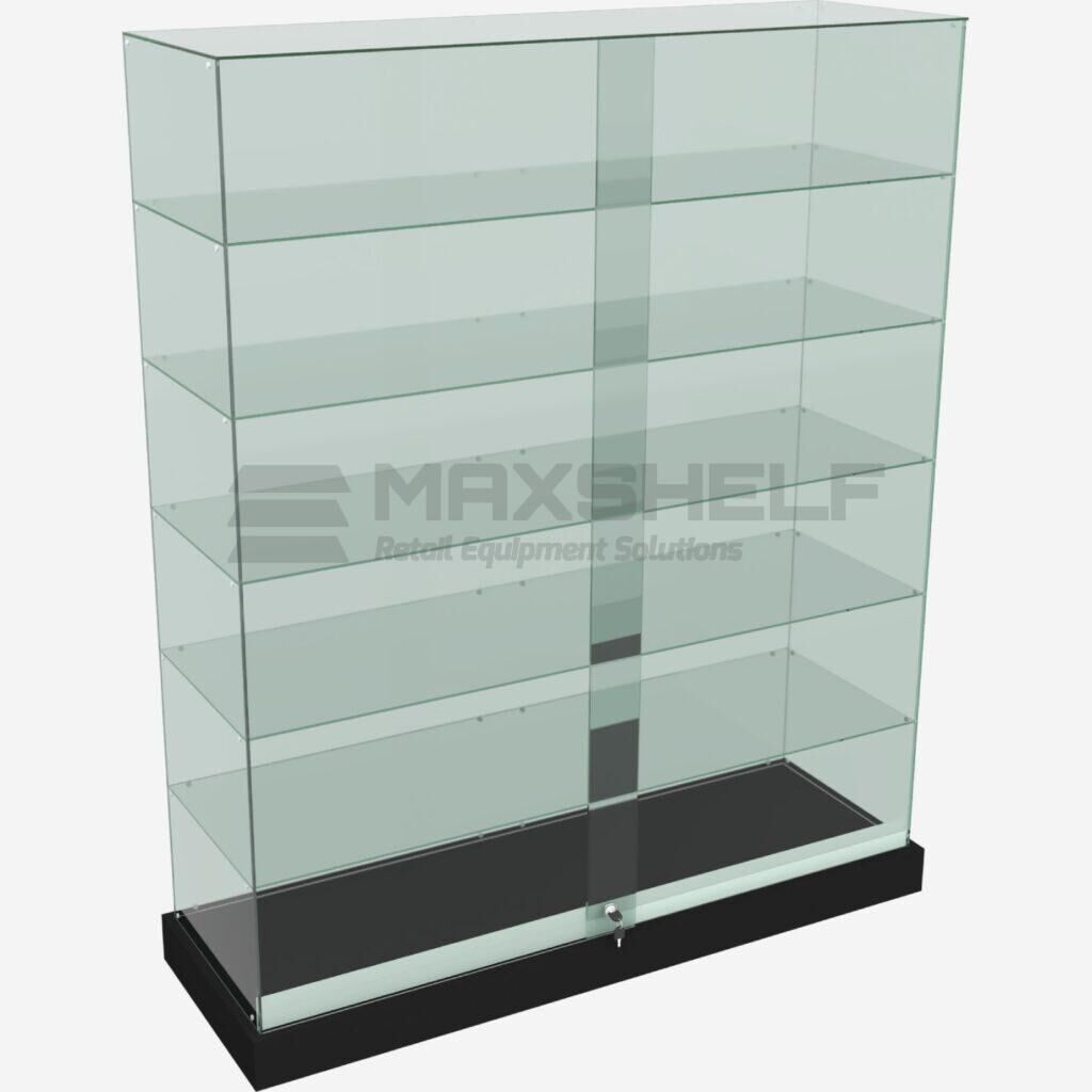 The Full Glass Showcase Display Cabinet – 5 Shelf (Black Base) is designed to present valuable and high-visibility products in a clean, professional retail setting. Constructed entirely from clear glass, it allows maximum product visibility from all angles while keeping items secure behind lockable glass doors.