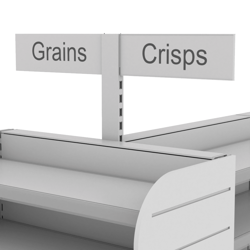 Elevate the organization of your retail or storage space with our T-Shape Gondola Tree, a practical and stylish solution for categorizing and displaying information for each isle in your store. Standing at a sleek 450mm high, this durable metal hook attaches effortlessly to the uprights of your shelf system, providing a stable and prominent display for category labels or signage.