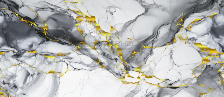 Finish: High-definition marble effect with black and gold veining