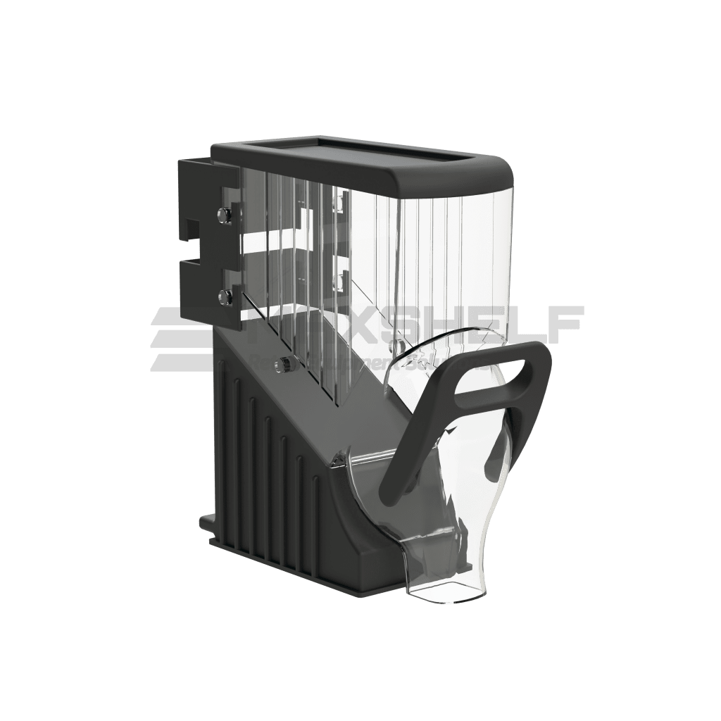 Uses the Gravity Fed Free Flow System to dispense products.