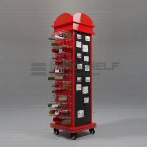 Its bold red colour and crown-themed header make it particularly suitable for tourist gift shops, souvenir stores, post offices and general retail, where eye-catching presentation encourages impulse purchases. This display combines practical functionality with strong visual impact, helping retailers keep products organised and accessible.