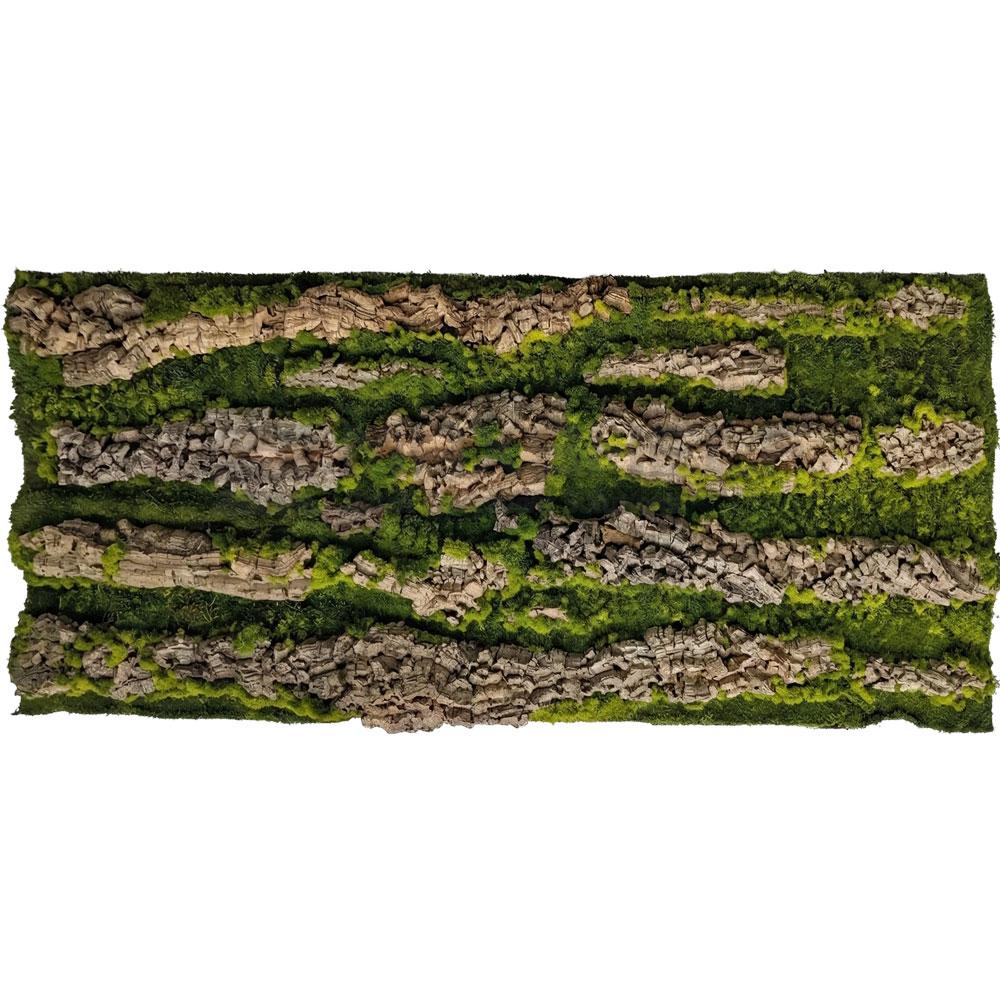 Short green grass interspersed with timber-look elements in a slim format — creates elegant vertical accent strips between shelving bays, around gondola units, and in narrow retail spaces where standard panels won’t fit.