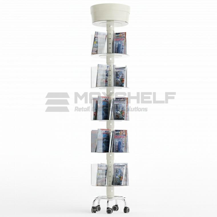 The Spinning Acrylic Magazine Display is a practical and space-efficient solution for showcasing magazines, brochures and small publications in any retail setting. Designed with five crystal-clear acrylic tiers, this stand offers up to 40 facings, giving excellent visibility from all angles.