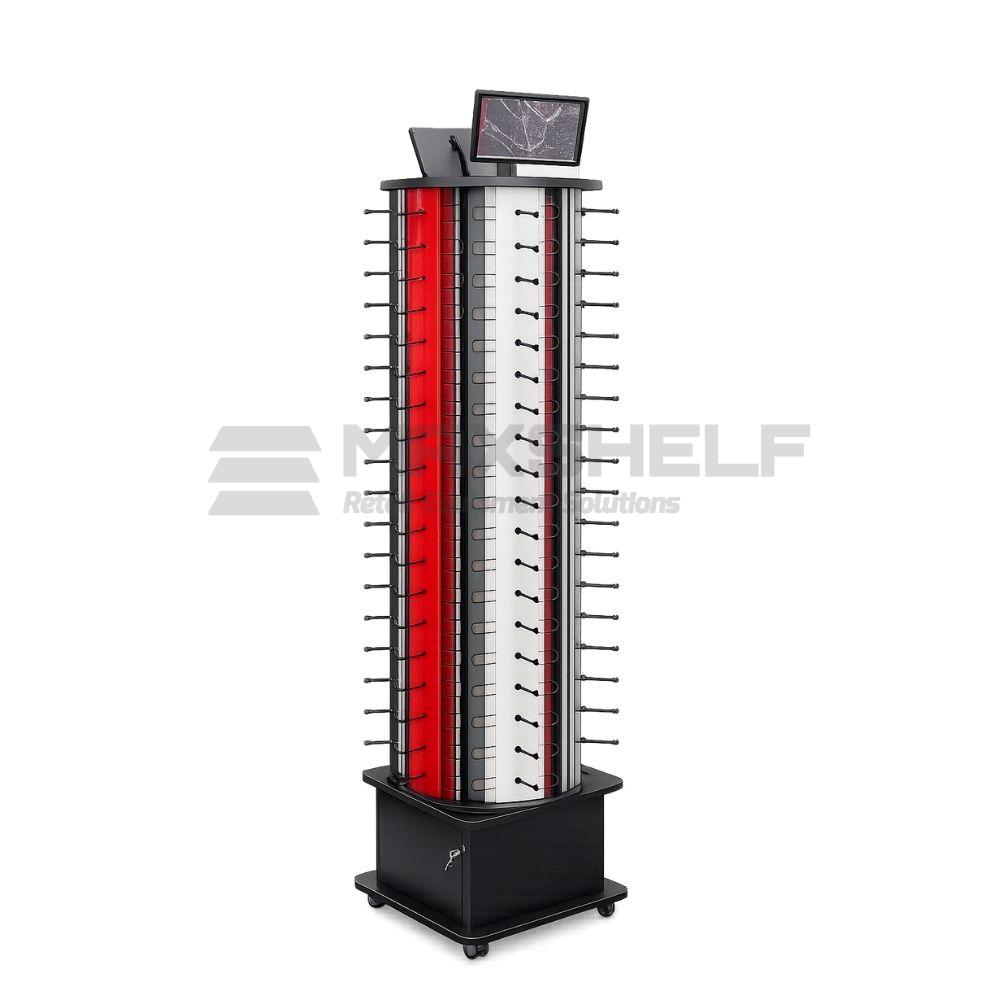 Elevate your retail display with this sleek spinning eyeglasses stand, designed to combine functionality with modern aesthetics. Its full 360-degree rotation ensures effortless browsing, allowing customers to view and select eyewear with ease.