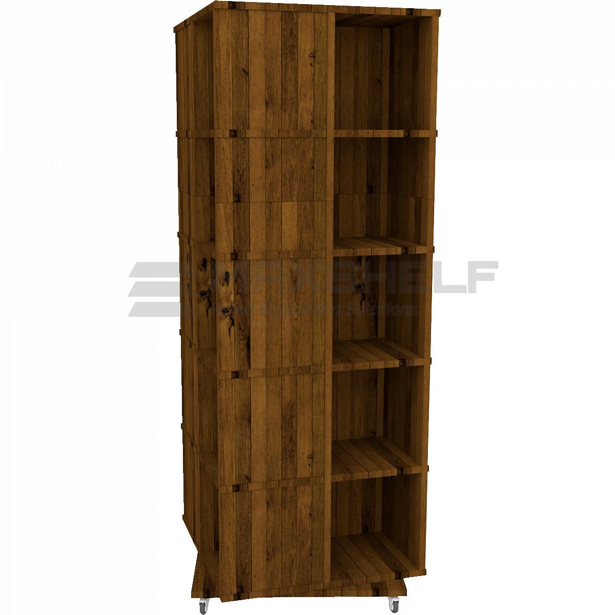 Ideal for boutique shops, clothing stores and lifestyle retailers, this cabinet combines visual appeal with practical functionality. Its tall vertical design maximises display capacity while keeping the footprint compact, making it suitable for both small and large retail environments. With its rotating structure and rustic finish, it offers a standout presentation for garments, scarves, accessories and folded clothing.
