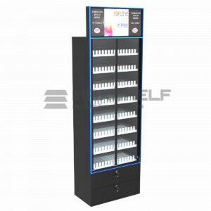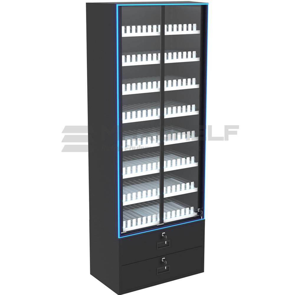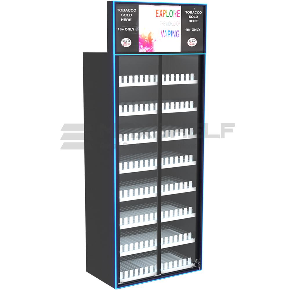 It features 8 rows and 14 adjustable pushers, making it perfect for neatly displaying a variety of vape liquids, pods, and accessories. The 375mm depth allows excellent product visibility while keeping the footprint compact — ideal for counters or tight retail areas.