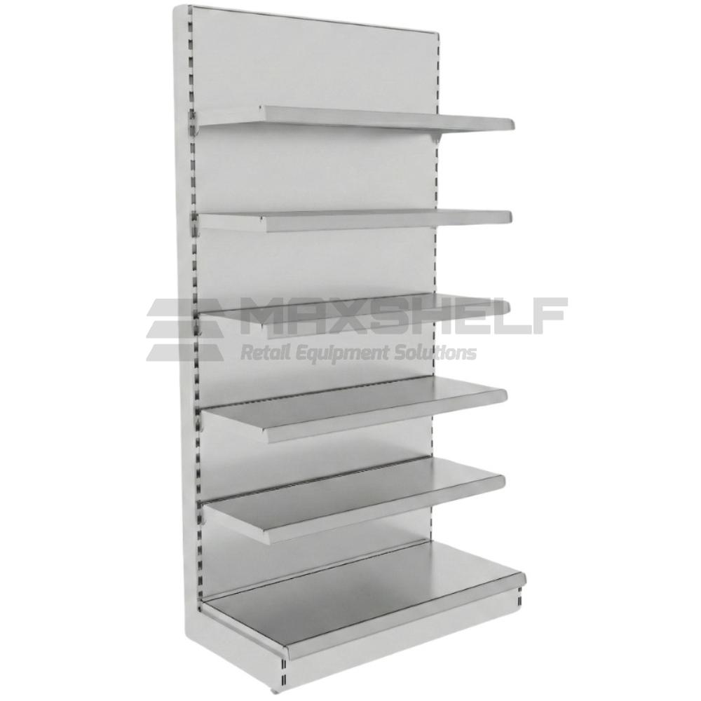 The 470mm / 370mm Retail Wall Unit is engineered for higher-volume food retail environments where shelf depth and product capacity are key. The 470mm deep base shelf supports bulk grocery items, larger packaging and heavy stock lines, while the 370mm adjustable upper shelves provide additional merchandising flexibility.